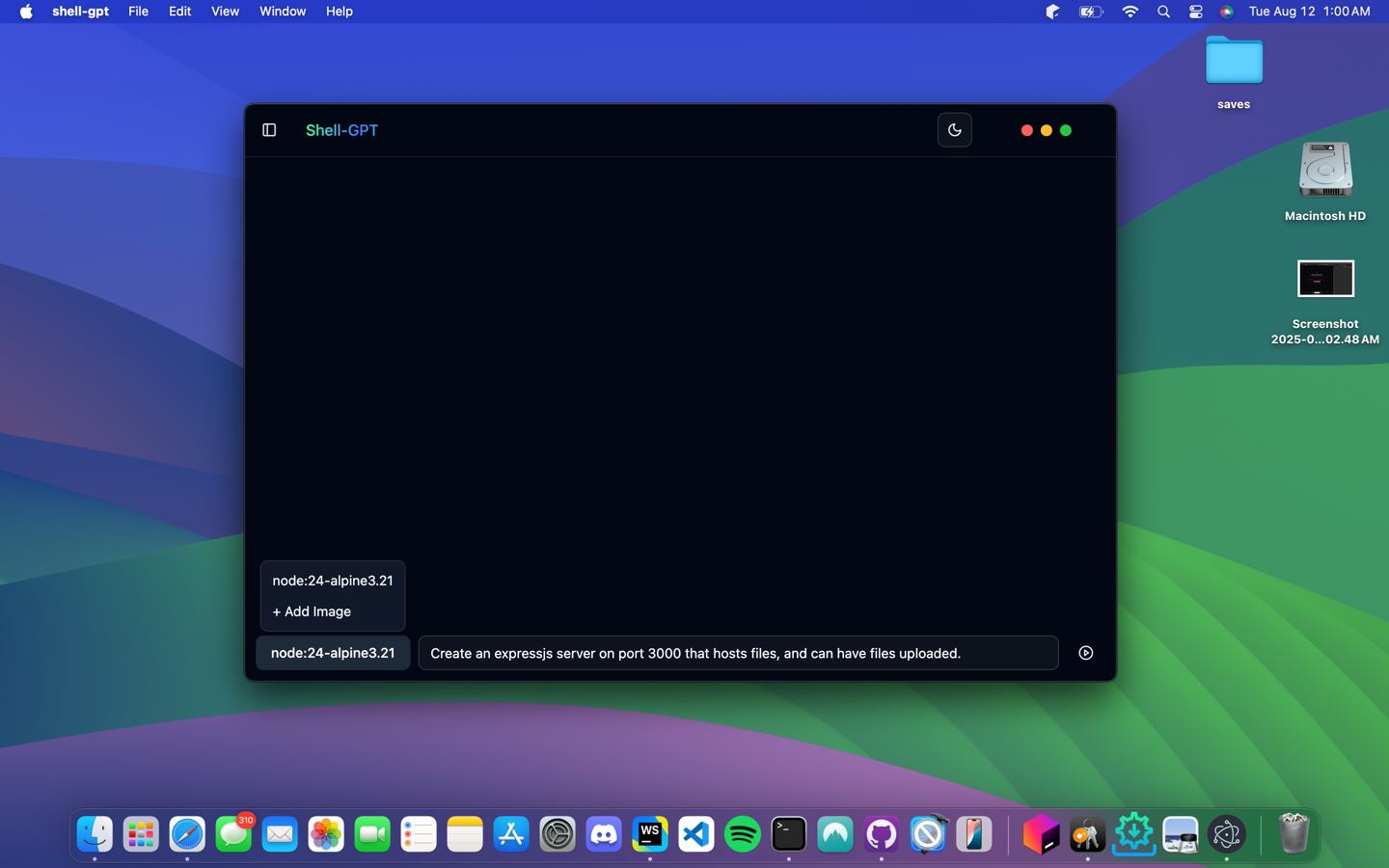 An Electron-based 'shell' that wraps GPT and executes its commands in a Docker container.